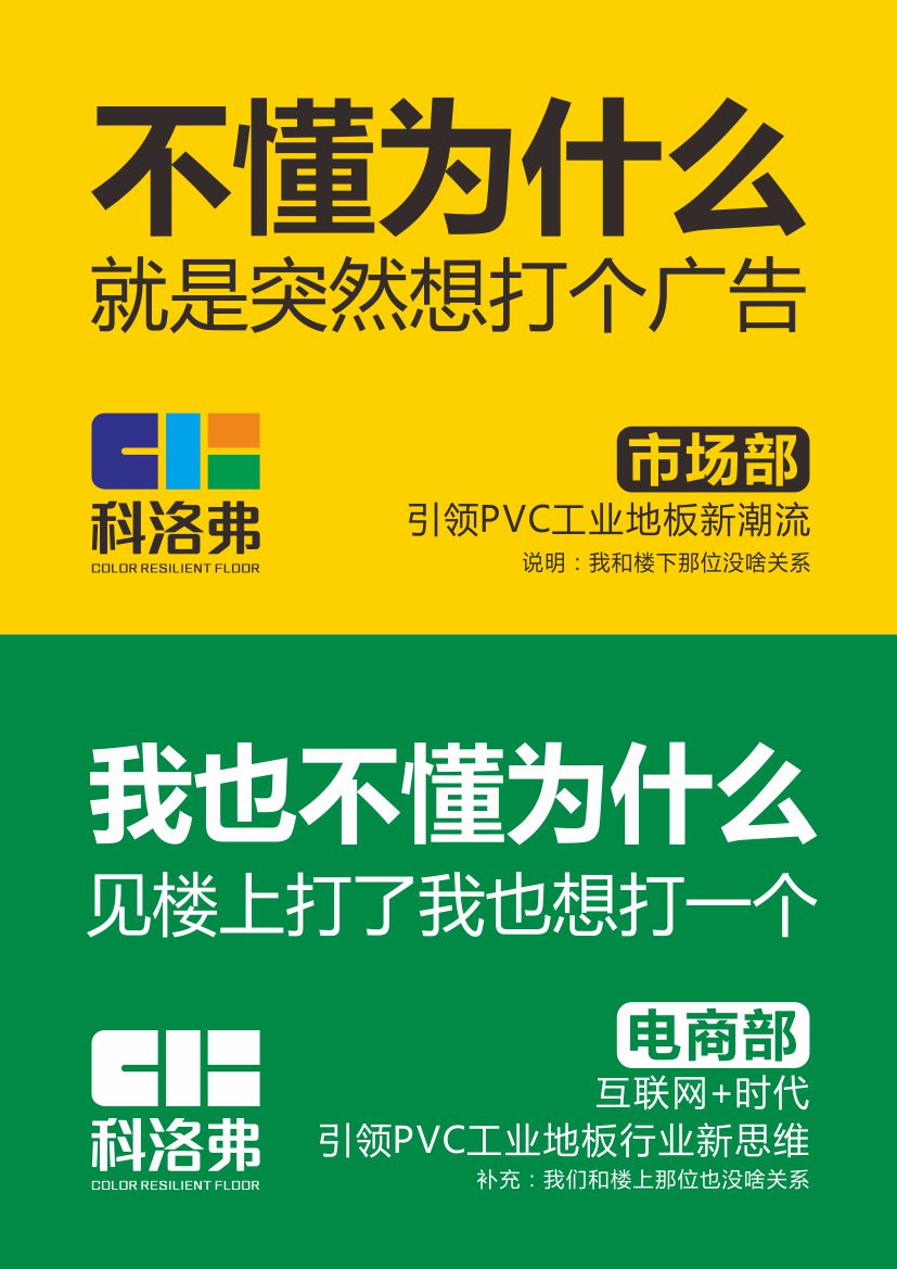 “不懂為什么,突然就是想打個廣告”----科洛弗高分子工業地板---引領高工業地面材料新潮流!